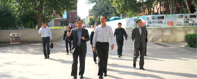 澳门网上博彩校长王殿军(前排左)陪同全国政协副主席梁振英一行参观校园