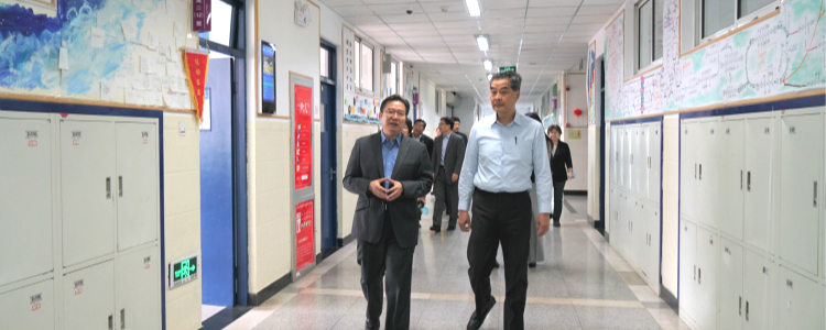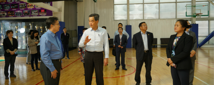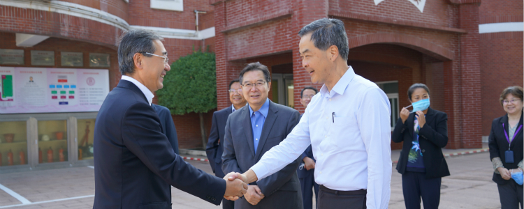 梁振英一行参观了学校教学楼、图书馆、标本馆、篮球馆等设施,听取了校长王殿军、党委书记方妍关于学校工作的介绍,并详细询问了学校建设的方方面面。梁振英对学校的办学成果表示祝贺,对学校的办学理念、育人模式、管理方式等表示肯定。