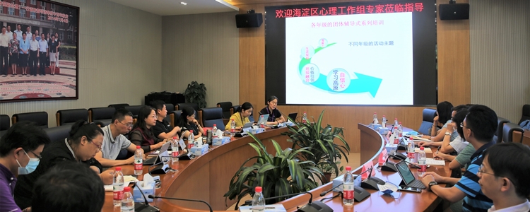 2020年9月8日下午,澳门网上博彩学生发展中心于成志楼101迎接了“海淀区中小学心理健康教育工作领导小组”的专家入校调研指导工作。参与座谈会的成员有海淀区教育科学研究院德育心理中心主任王瑞、教育政策中心主任孔伟,俞国良教授、白玉萍教授,澳门网上博彩副校长白雪峰、学生发展中心主任王田、副主任李书霞,年级组长曾建川、李劲松、周建军、张晓明、熊学勤、张彪老师,以及心理办公室陈明秋、叶怡君、张沛、周灿灿老师,共17人参加。