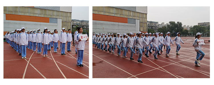 9月23日,天公不作美,一早便阴雨连绵。但雨水浇不灭同学们心中的火热,大家在寒风中集合,由教官带领至体育馆内进行训练。下午雨停之后,各班回到操场进行了行列式汇报表演,各班的行列式方阵迈着整齐的步伐依次走过主席台,接受领导的检阅。同学们精神饱满、气势如虹,他们步伐矫健,神情坚毅,口号嘹亮,动作整齐划一,展示了新时代“后浪”的良好形象和精神风貌。