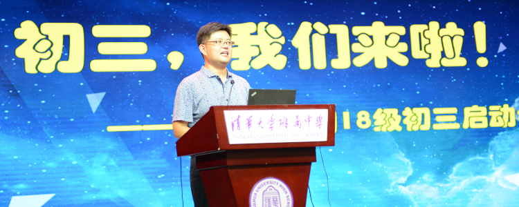 随后,王殿军校长致辞。王校长用四个“有”表达了对初18级同学的殷切期望和祝福。他希望同学们首先“有目标”,要志存高远;希望同学们“有计划”,在疫情防控特殊形势下,生活要有规律,学习才有效率;希望同学们“有行动”,努力践行附中“行胜于言”校训;祝愿同学们“有成功”,希望大家通过努力能够再聚附中,再续附中缘。王校长有温度有力度的发言极大振奋了同学们决胜初三的信心。