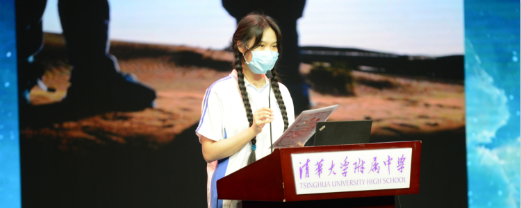 之后,学生代表江艾代表全体学生发言。她带领同学们重温了刚入学时老师的教诲,强调大家作为新时代青少年的责任和担当。她也倡议大家热情勇敢地拥抱初三,一起乘风破浪、扬帆起航!