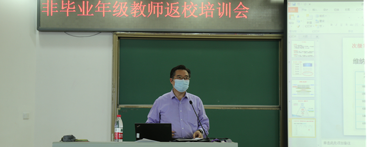 最后,校长王殿军总结发言。他强调,教师要珍惜来之不易的开学,时刻保持警惕状态,做好防疫工作;要快速调整心态,做好线上线下教学的衔接工作,做到逐步加速;要积极关注特殊人群,重视学生心理状态,细致耐心地做好返校复课工作。