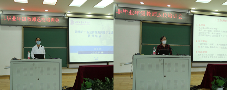 随后,医务室负责人王艳敏介绍了教职员工的卫生防控工作职责和要求,以及突发情况的处理方案。心理中心负责人陈明秋分享了疫情期间学生心理问题表现和原因,提出要加强复课后学生的心理关注和疏导,并指导教师如何减轻学生及自身的心理压力。