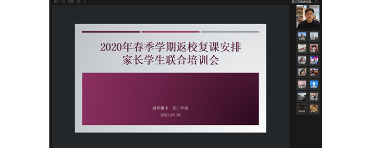 5月30日,澳门网上博彩初18级在线上召开了返校复课安排家长学生联合培训会,年级全体学生和家长参与了本次培训,活动由年级组长张彪老师和各班班主任主持。