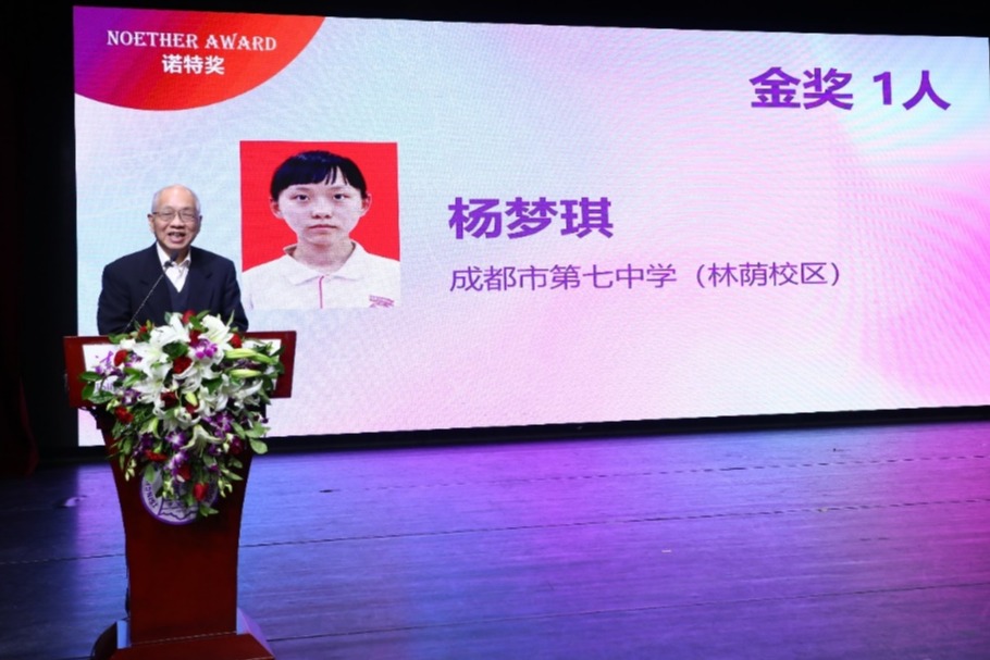 金奖得主杨梦琪通过远程连线发表感言。她希望更多女生一同珍惜这来之不易的机会,追求自然的真相,发现探索并传承数学的美,为数学大厦添砖加瓦,成为数学发展中不可或缺的一部分。
