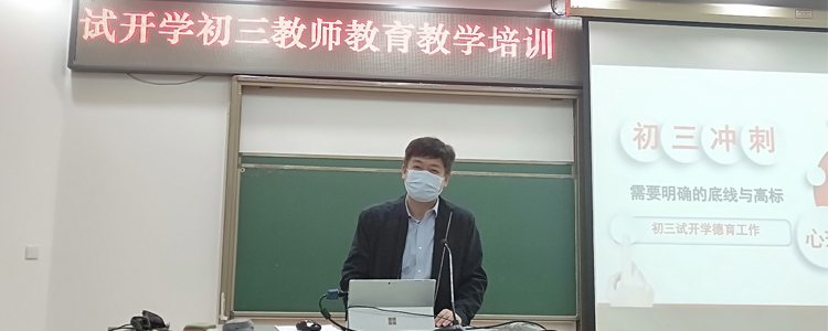 2020年5月8日上午,澳门网上博彩召开初三试开学全体教师动员培训会。本次会议由初三年级组长张晓明主持。校长王殿军、党委书记方妍、副校长白雪峰、副校长徐文兵、教学管理与研究中心主任张苏及全体初三教师共60余人参会。