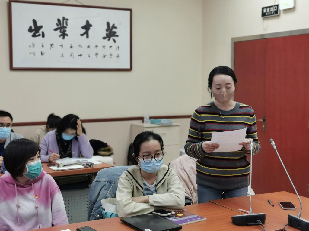 第三部分是理论学习。支部党员尹然老师通过“23岁半传奇”故事,介绍了清华大学王大中院士的事迹。丁磊同志分享了自己学习《中国共产党第十九届中央委员会第六次会议》精神的体会。在理论学习之后,所有与会党员和教师分享参加本次预备党员发展和转正大会及理论学习的体会和感想。入党积极分子周维纬表示,能够参加今天的发展大会使自己深受鼓舞。作为入党积极分子,她将始终以党员的标准来要求自己,不断提升自己,争取早日成为一名光荣的共产党员。