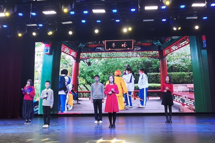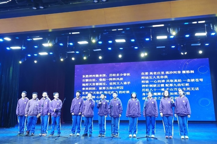 初2108赵上哲等同学为现场的师生带来振奋人心的朗诵《西游记那些事儿》,勉励初21级的同学们在生活中砥砺前行。