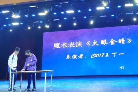 初2117班的王丁一同学的魔术表演《火眼金睛》为观众带来了全新的体验,现场的同学们赞叹不已,跃跃欲试。现场气氛非常热烈。