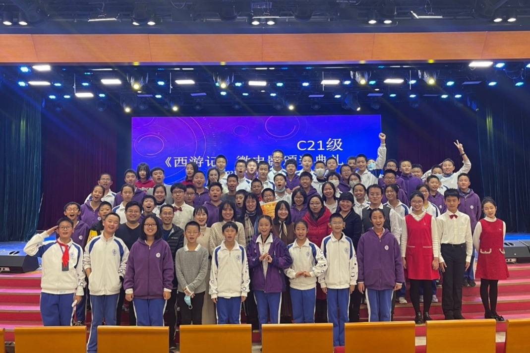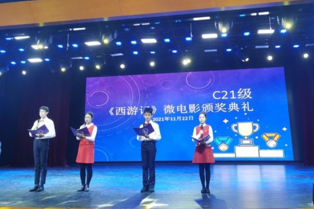 2021年11月22日下午,澳门网上博彩初21级在报告厅举办“《西游记》名著阅读活动暨微电影颁奖典礼”。初中语文教研组组长邱晓云、初20级语文备课组杨玲、初21级全体语文教师、全体班主任及学生参加了本次颁奖典礼。师生齐聚一堂,共同享受了一场别开生面的视听盛宴。歌曲串烧、舞蹈、武术、朗诵、魔术等节目让同学们大饱眼福,精彩的节目中凝聚着初一学子对《西游记》这部中国古典小说的深挚热爱。