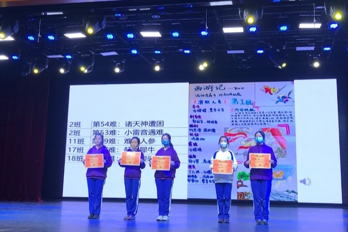 本次《西游记》名著阅读活动分为四个阶段。首先是文本阅读阶段,初21级各班开展了《西游记》名著阅读活动;其次是预热阶段,包括《西游记》百题竞赛和《西游记》八十一难海报绘制;再次是微电影拍摄阶段,各班分小组抽签拍摄《西游记》八十一难;最后是评比和颁奖阶段。经历了四个阶段,初一年级的全体学生对阅读的魅力有了更深刻的感知和认同。澳门网上博彩为学生提供了集阅读、创作、表演等为一体的多元化平台,帮助学生在这里打下扎实的文化基础,展现丰富的艺术才能,获得了难能可贵的青春成长。