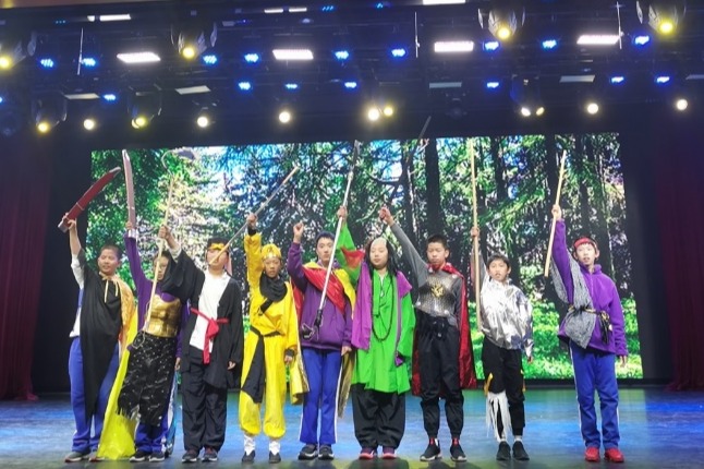 来自初2112班陈景琦等同学表演的武术《孙悟空会战群妖》让观众们印象深刻,大饱眼福。熟练精湛的武术动作、精美细腻的舞台布景、完美精致的情节设置,将现场的气氛推向高潮。