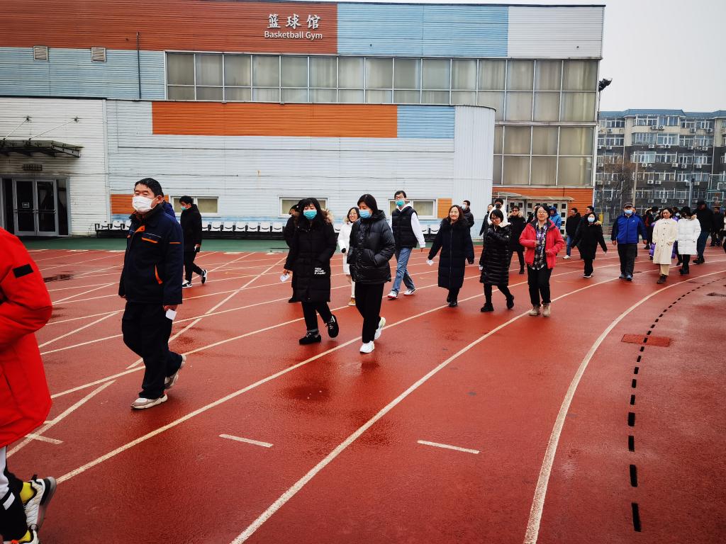教职工们以附中操场为活动场地,每人先有序地领取跑步凭证的票,然后在操场跑步。虽然天气寒冷,地面湿滑,但是老师们依然精神饱满地参加锻炼。跑步结束后,教职工们再去签到处上交跑步凭票,并签字确认。