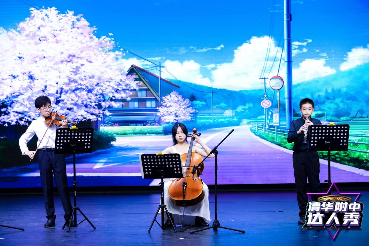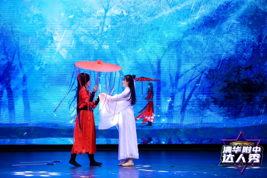初2009白雨桐、初2002肖语墨和初2002陈彦哲、高2006邹道融分别演奏了中阮、箜篌和二胡这些中华传统乐器演奏串烧,透过婉转悠扬的乐曲,抚摸到艺术的悸动;越过清幽的曲调,倾听到青春的萌芽,让大家体会到了古韵的魅力!