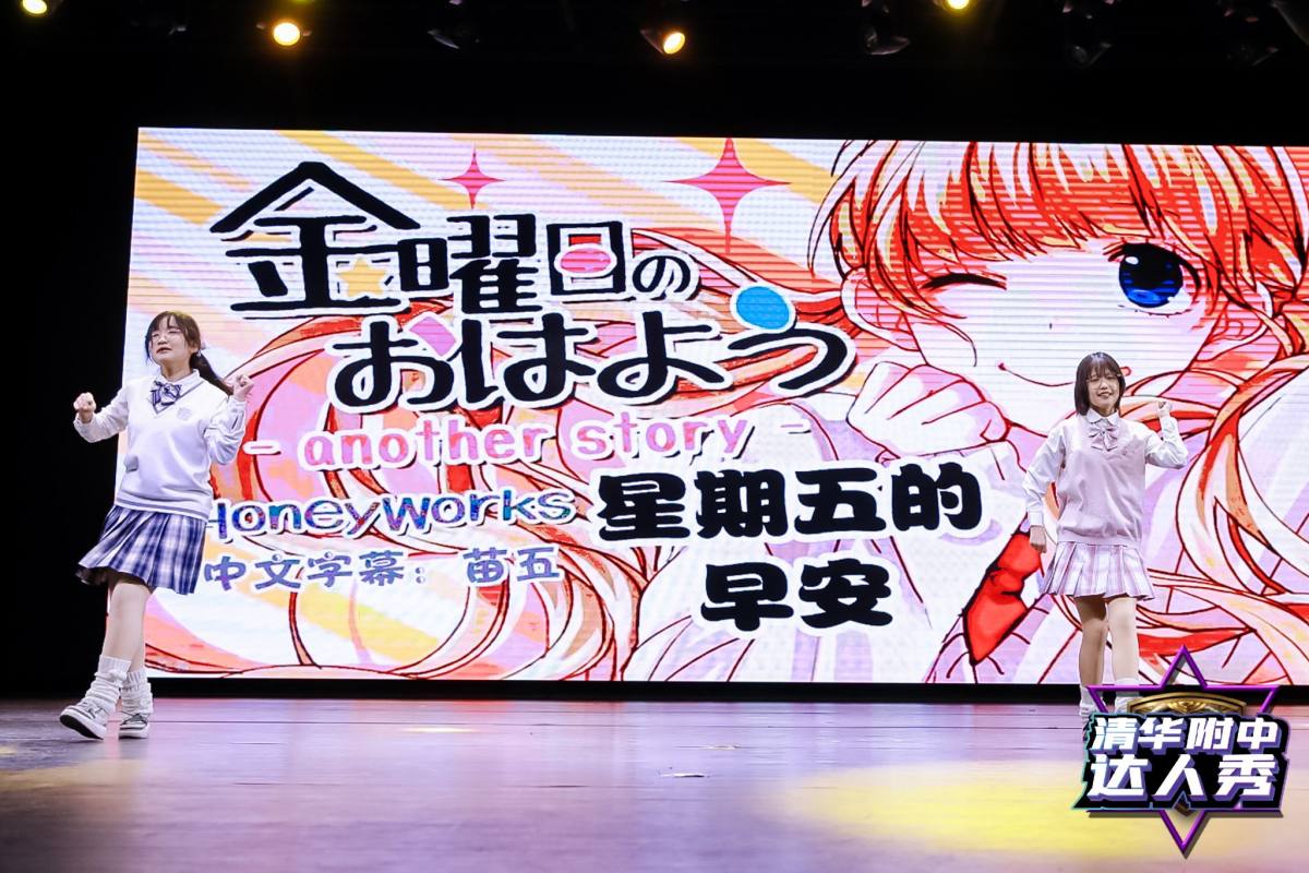 初2007班林钰晰、陈乐凡给大家呈现了宅舞这一舞蹈类型,这是一种融合多种风格和新式元素的舞蹈,可萌可甜,可帅气,可飒爽。动漫的元素也为舞蹈注入了不一样的活力和美感,她们的活力也感染了大家。