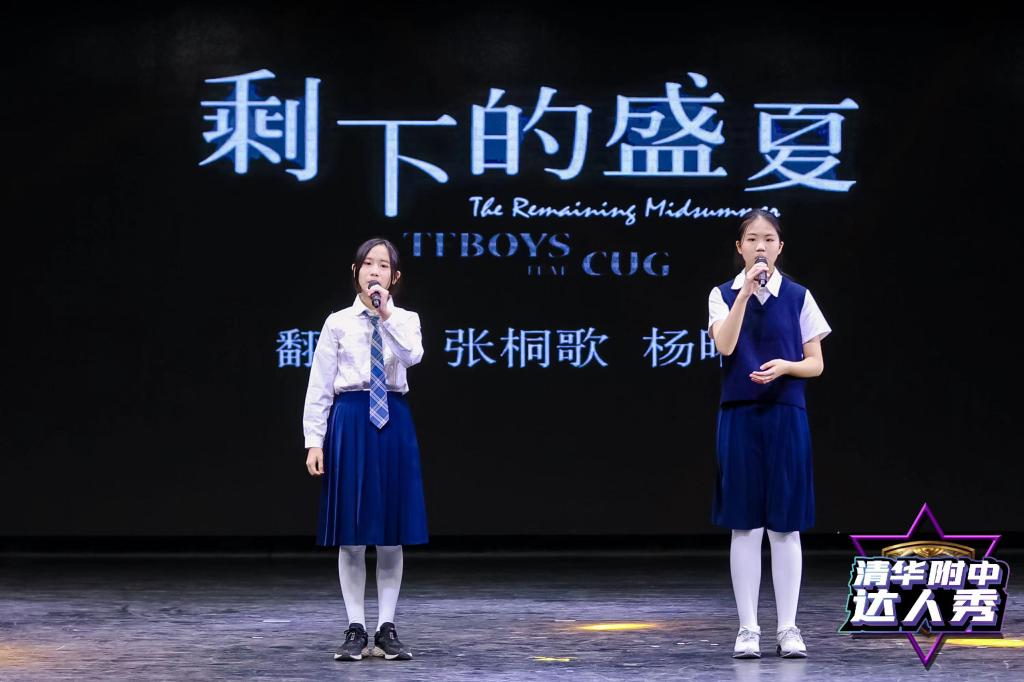 随后,初2007杨曜嘉、张同歌为同学们带来了合唱表演。她们用高超的唱功惊艳了同学们。