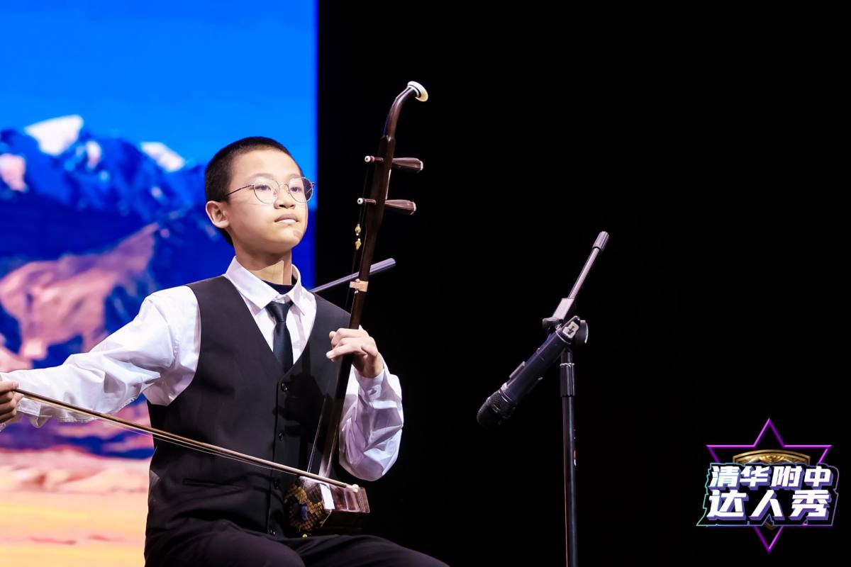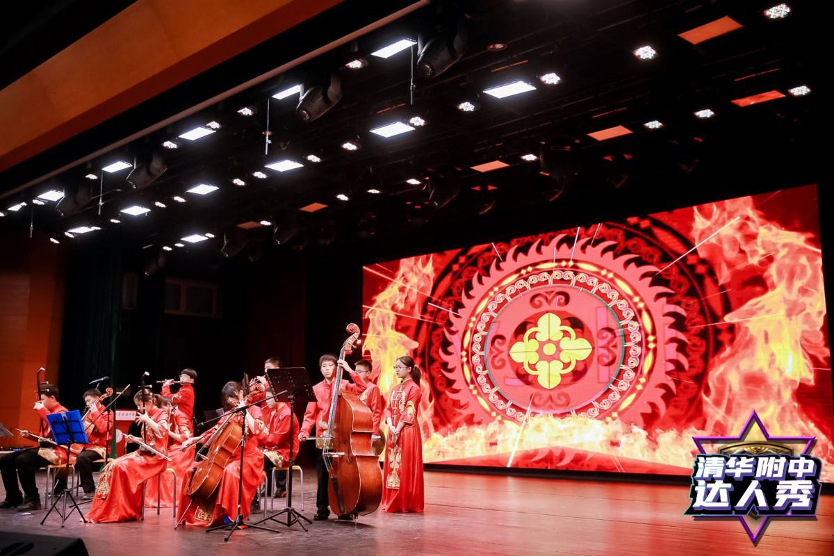 初2102班的同学组建的一支十人乐队带来的《云南音诗—火把节》为附中达人秀拉开了序幕。他们将各自的音乐特长完美地汇聚在一起,让不同的传统乐器共同演奏出了一幅和谐的乐章,用音乐写诗,用优雅舒缓的音乐把大家带到了遥远的云南。