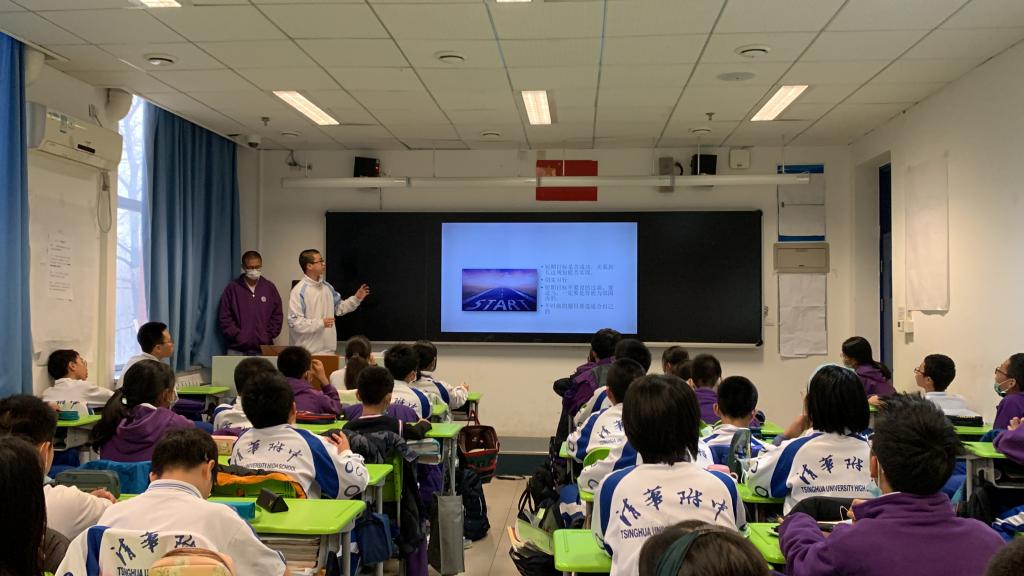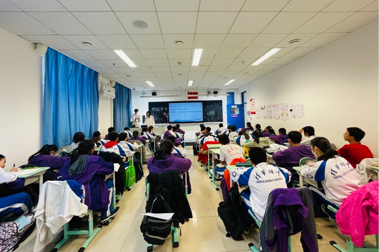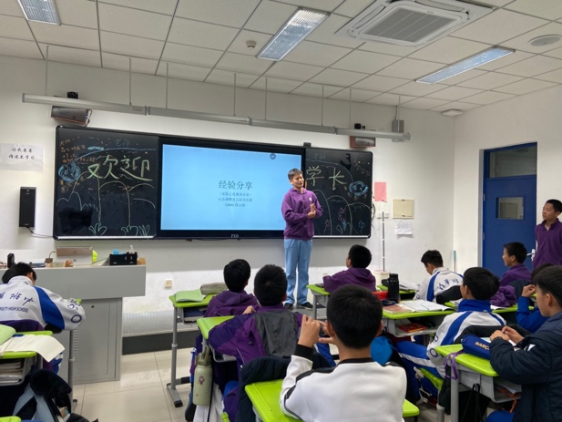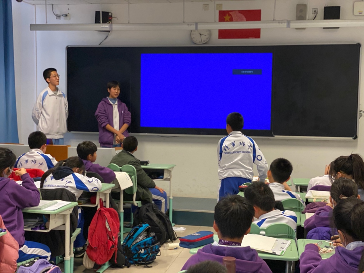 初2003班的陶墨和崔子榆学长向初2103班同学介绍经验
