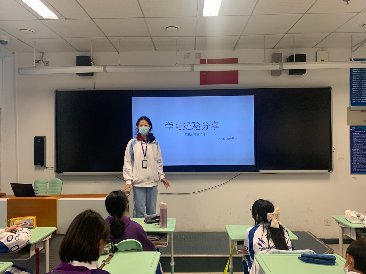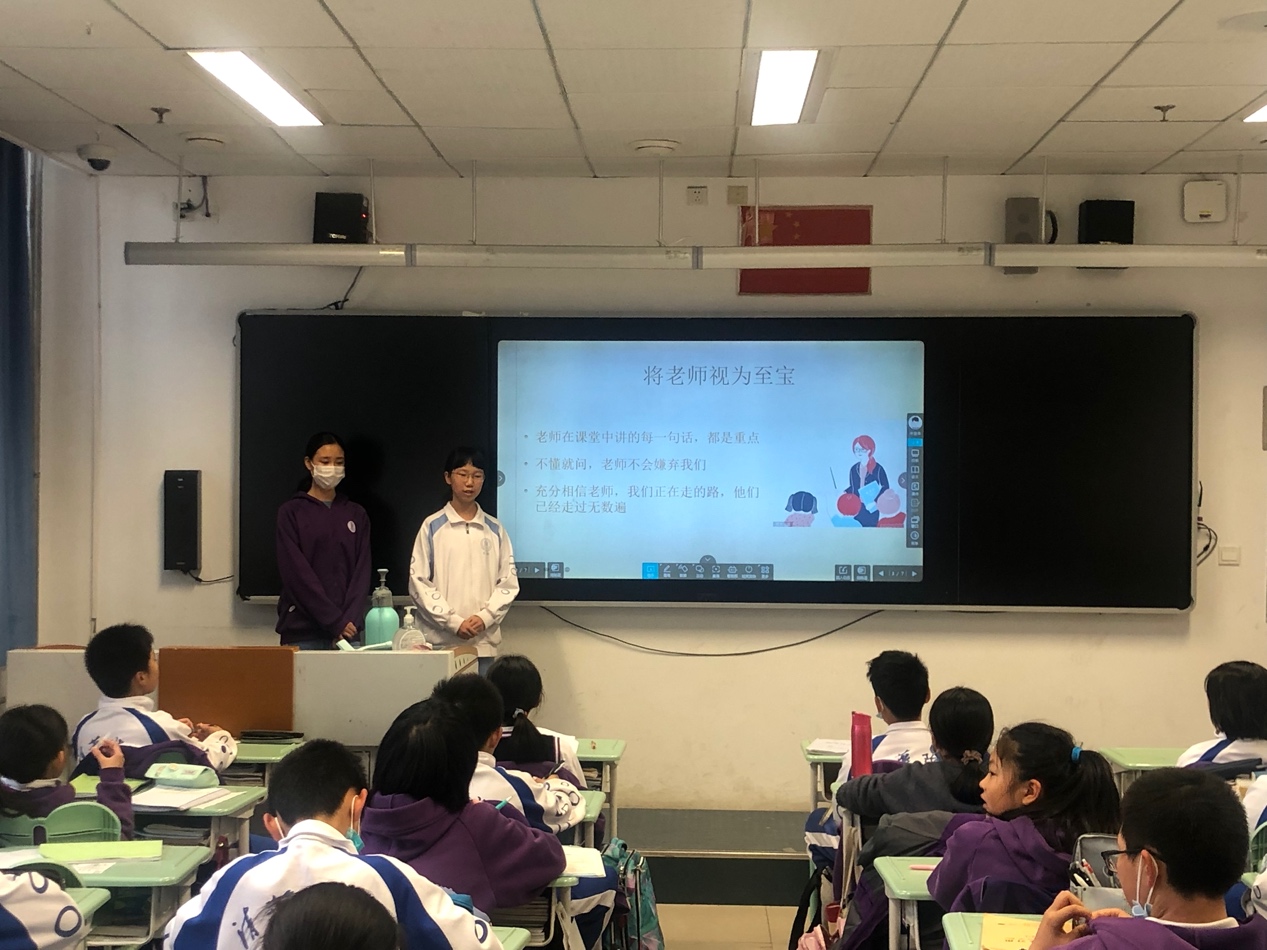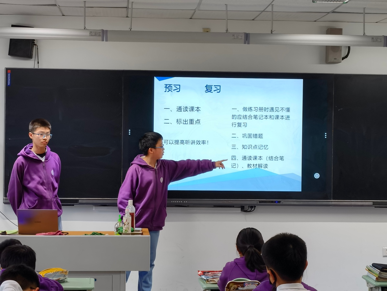 初2018班吴逸轩、郭子怡在初2112班分享经验