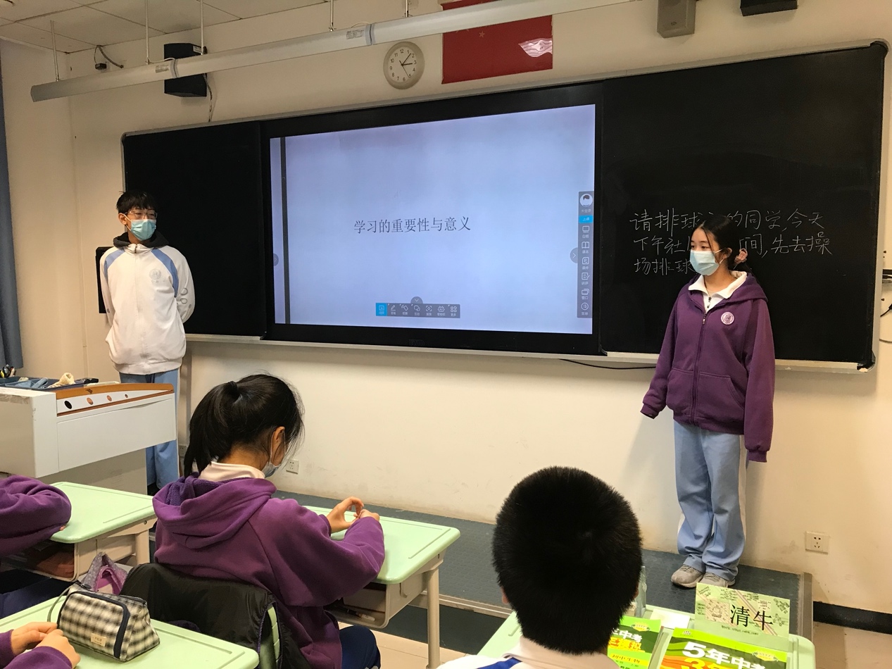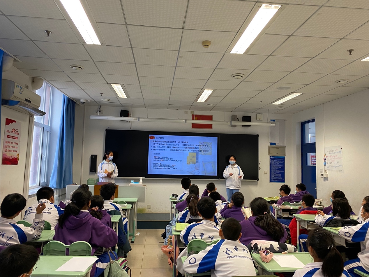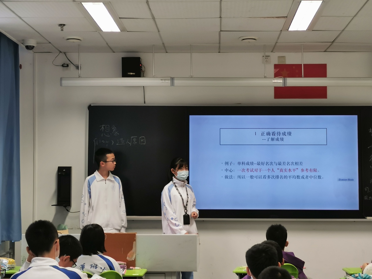初2018班吴逸轩、郭子怡在初2112班分享经验
