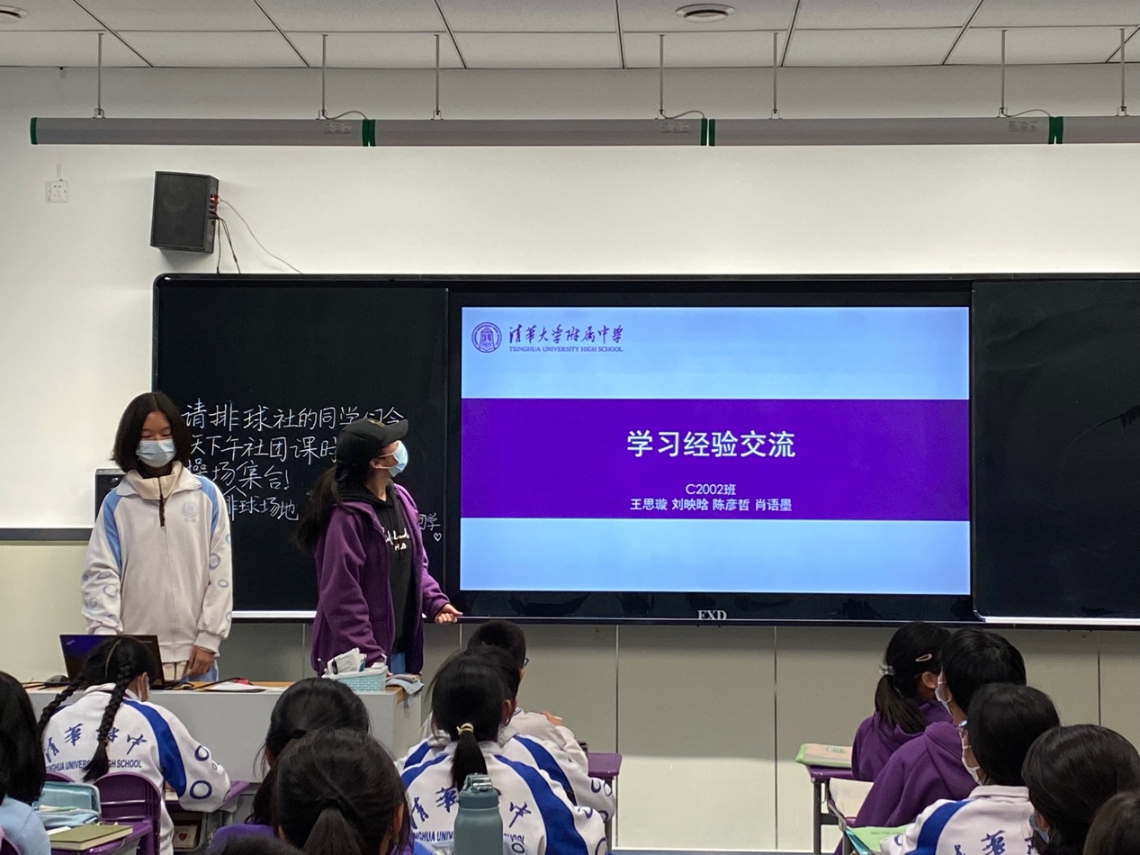 初2002班王思璇、刘映晗同学向初2102班同学介绍学习经验