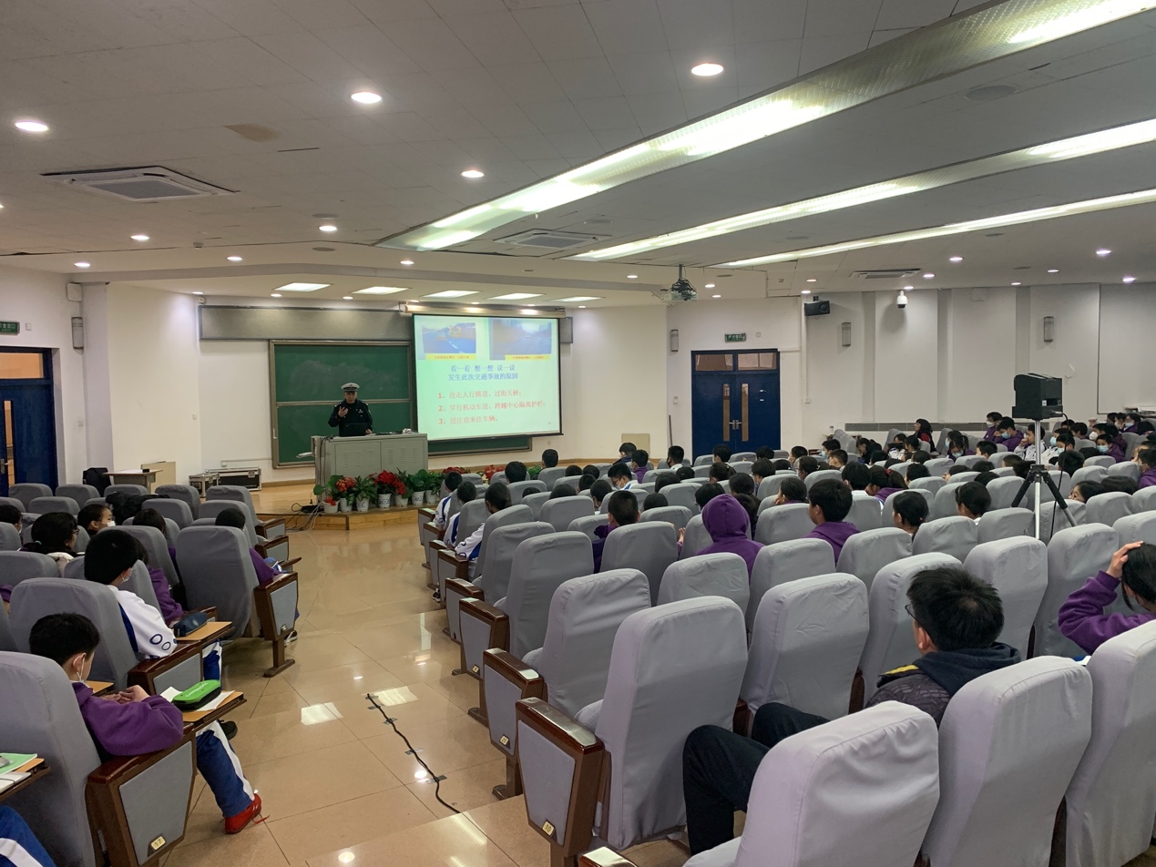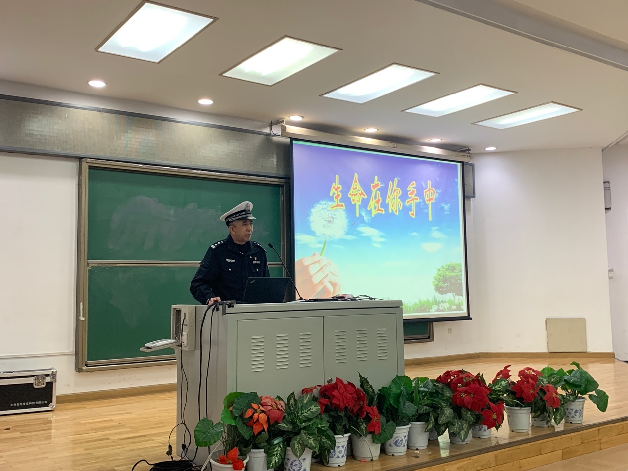 张玉福警官从同学们身边的出行现象入手,用生动的案例说明了行车规范的重要性,并从走路、乘车、骑车等方面普及交通安全知识,提醒同学们文明出行,养成遵守交通法规的良好习惯。张警官特别提到:“每一位同学的规范出行不仅关系着自己的安全,也关系着一个家庭的幸福。”