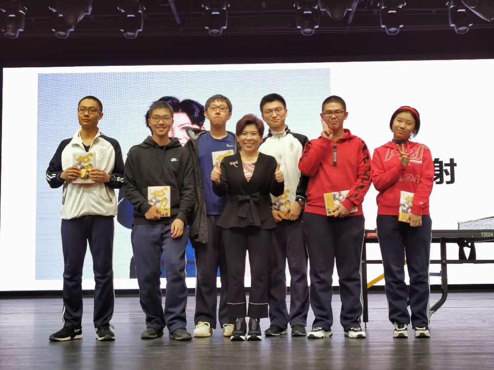 报告结束后的互动交流环节,同学们争先向邓亚萍提问,充分显示了同学们对榜样的热爱和敬爱。最后,邓亚萍还与部分高19级学生进行了球技交流,并给提问的同学赠送了自己写的书《心力》。