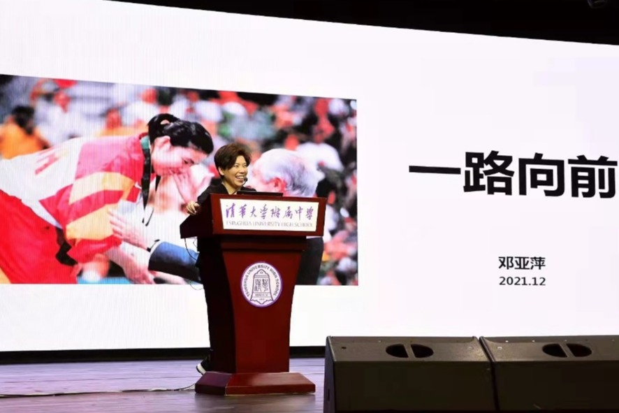 “不服?就只能让自己更强!因为矮,我看每个球都是高的,都是搏杀的机会!”邓亚萍用自己的经历鼓励高三学生勇敢地面对生活和学习中的种种考验。