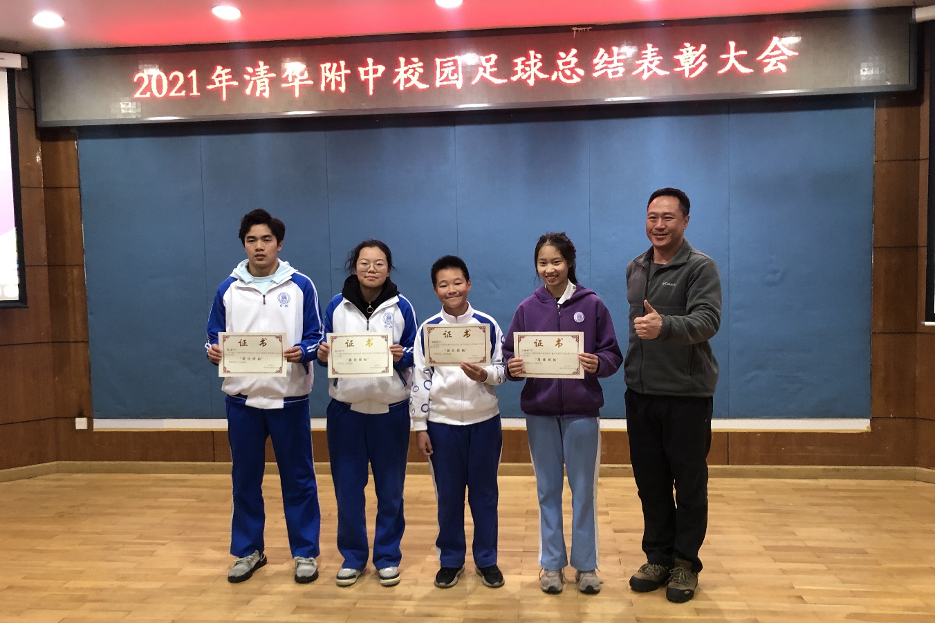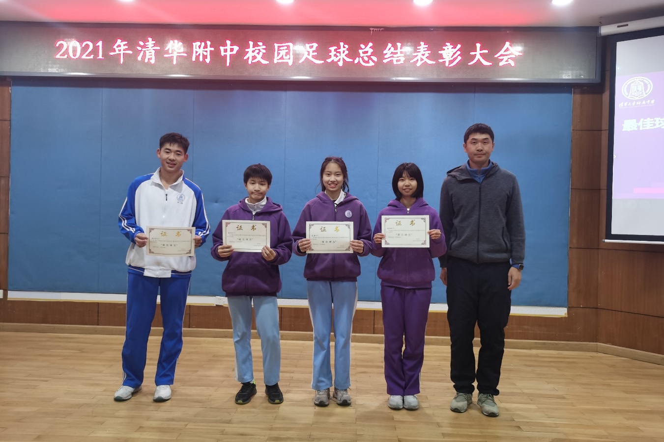 负责四支代表队的老师和大家分享了各支代表队从建队到如今的基本情况、感人事迹和取得的优秀成绩。每位带队老师多年为球队勤勤恳恳付出,以立德树人为根本任务,先教做人,再教踢球,做一名厚德、会学、能踢球的优秀澳门博彩在线人,培养了一批批品学兼优的足球人才。随后,丁磊老师为4支代表队带队教师颁发聘书。各位带队老师为获得优异成绩的队伍进行颁奖。