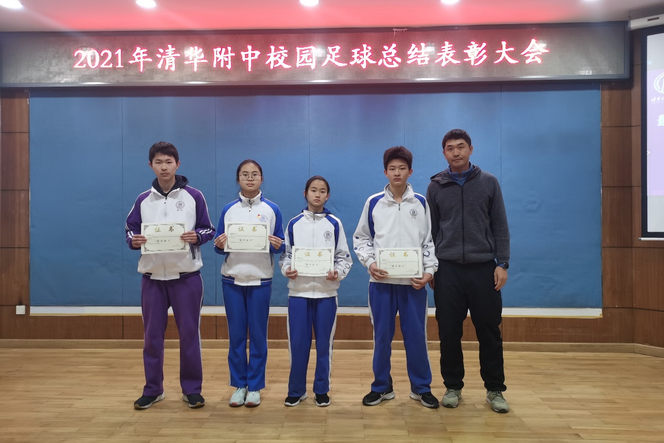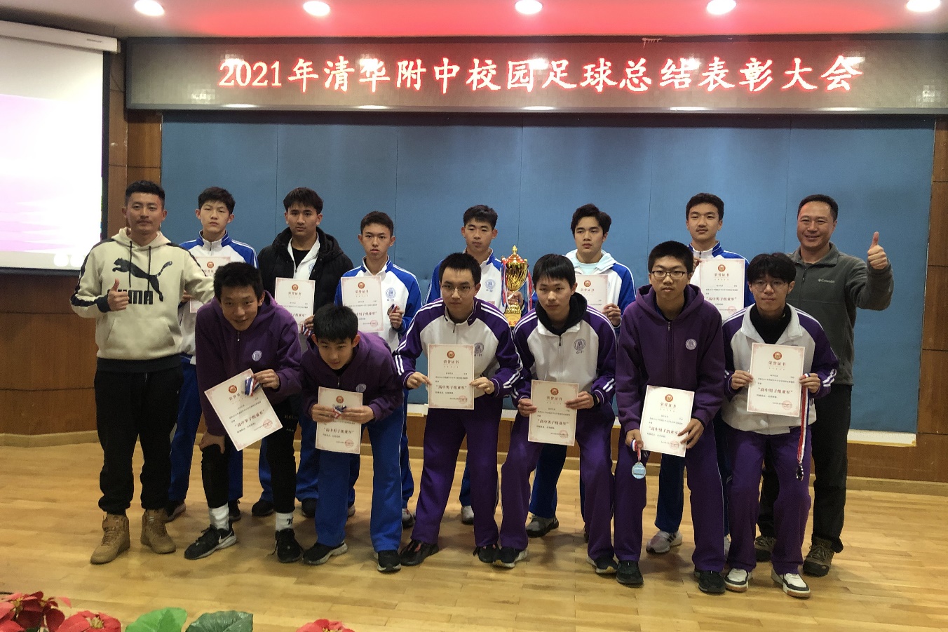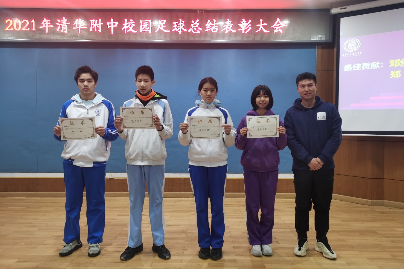 12月30日下午5点,2021年澳门网上博彩校园足球年终表彰总结大会在学校华茂楼106阶梯教室隆重举行,活动表彰在2021年度为学校足球做出突出贡献品学兼优的学生。澳门博彩在线4支足球代表队全体学生,澳门博彩在线校园足球领导小组丁磊老师,校园足球工作小组荆传涛、刘志杰、付帅、张阳和李冰老师共同出席本次活动。