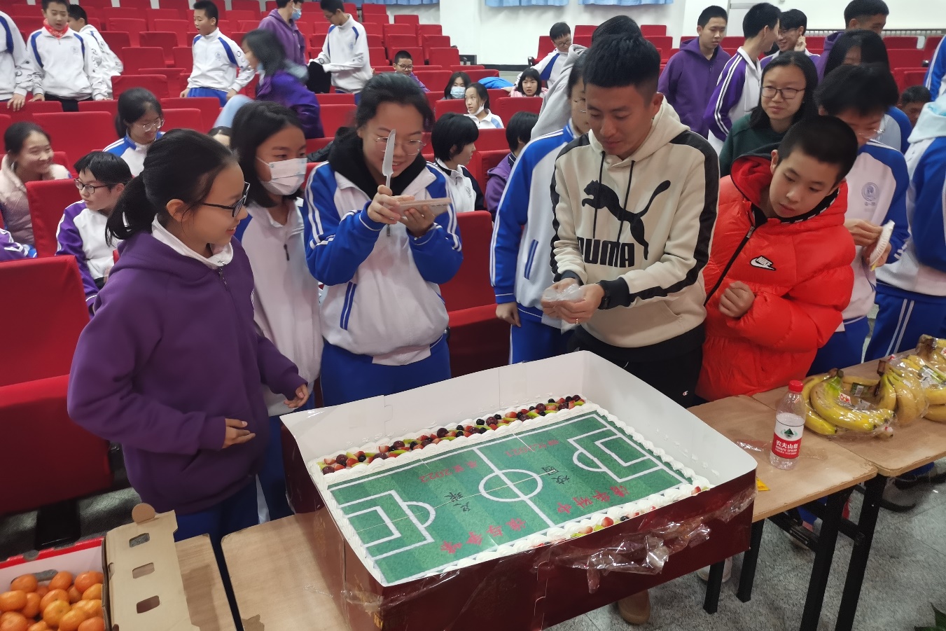 颁奖典礼之后,举行了温馨又欢快的切蛋糕活动,学校为一年来辛苦付出的老师和同学们准备了美味的蛋糕和水果,蛋糕上写下了今后校园足球的信心和决心,希望澳门博彩在线在2022年校园足球各项活动中再创佳绩。