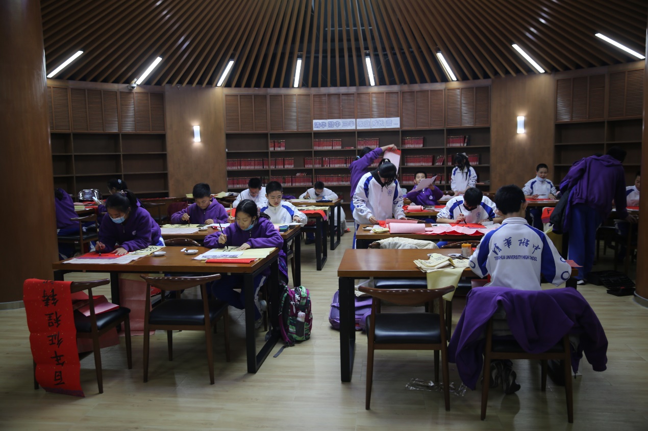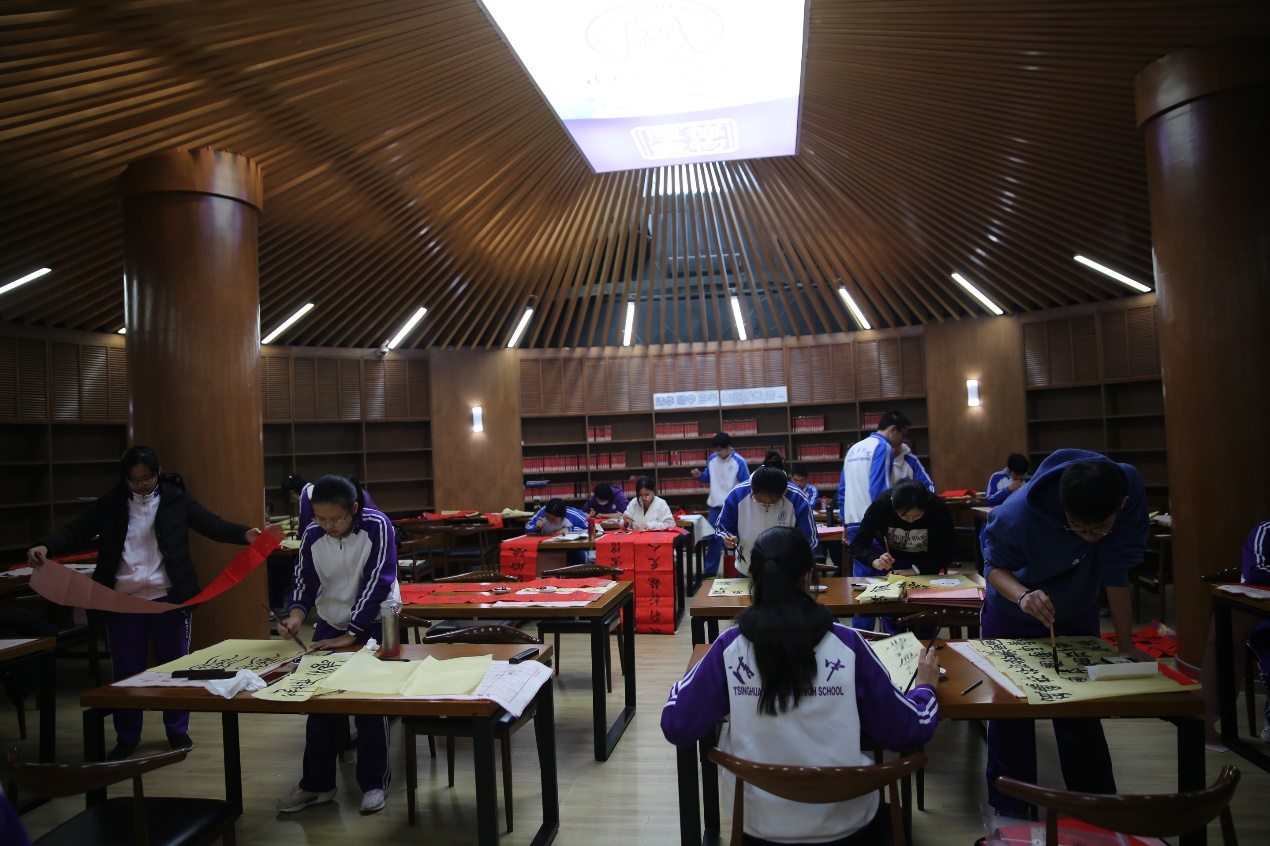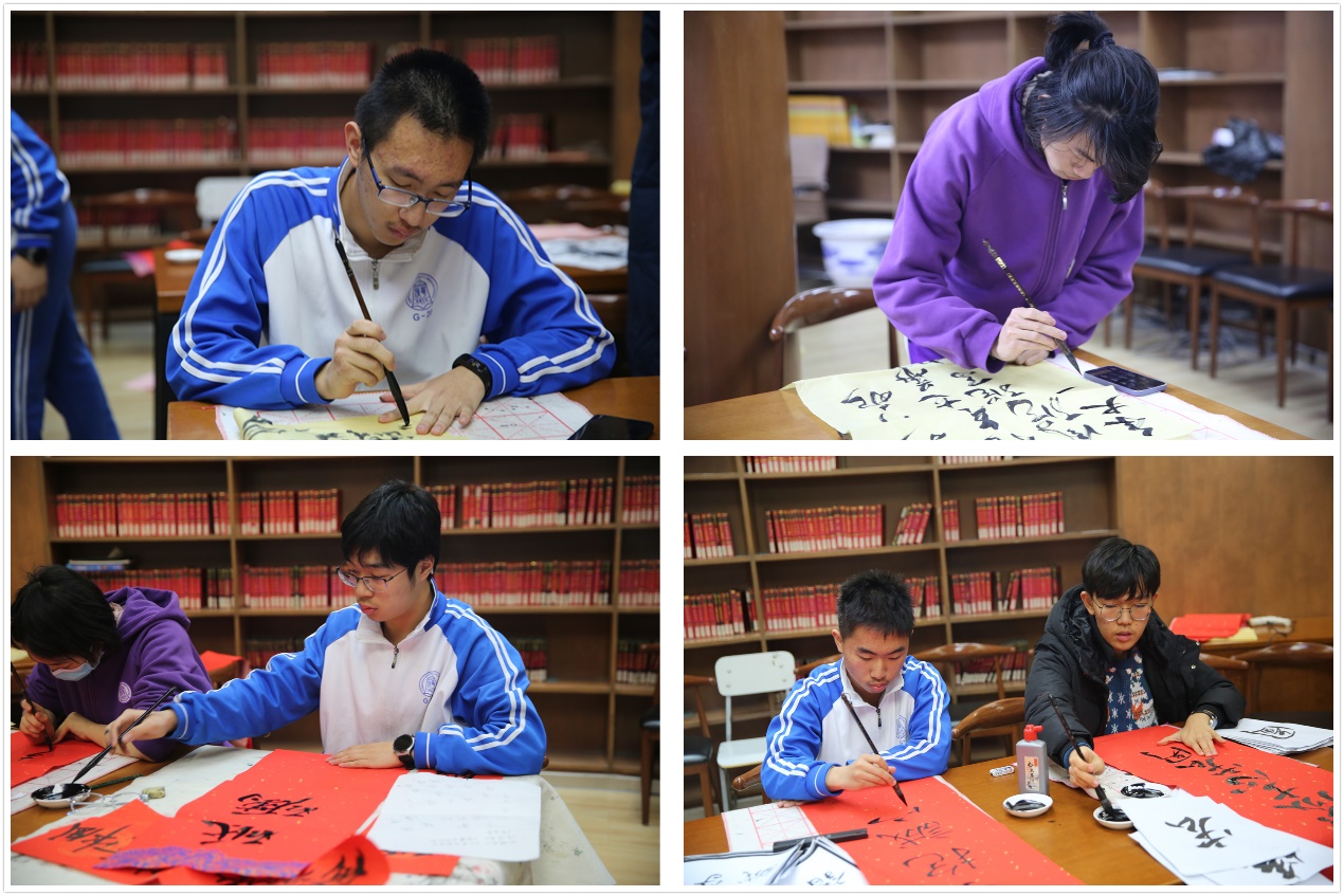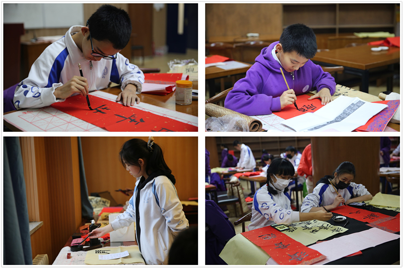 在春联现场书写环节,来自初、高中书法社团的学生、有书法爱好与特长的学生挥毫泼墨,各展所长。浓浓墨香承载着学子们美好的新年愿望与祝福。美术教研组与语文组教师担任评委,最终精选出春联书写类一等奖10名,二等奖14名,三等奖23名。