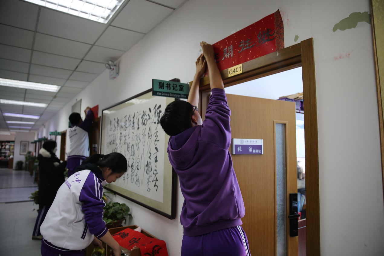 “贴春联、迎新年”是中华民族的传统习俗。在辞旧迎新之际,澳门博彩在线承担“水木行动”志愿活动的高2109班同学参与了张贴春联活动。他们将饱含附中学子美好祝愿的春联张贴至成志楼、教学楼及班级门前。翰墨飘香的春联,为澳门博彩在线带来了一派喜庆吉祥。