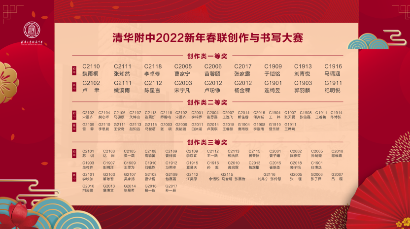 本次春联大赛的创作阶段,每班选送两幅春联参加评选,经语文教研组研讨后,评审出创作类一等奖18位,二等奖31位,三等奖41位。