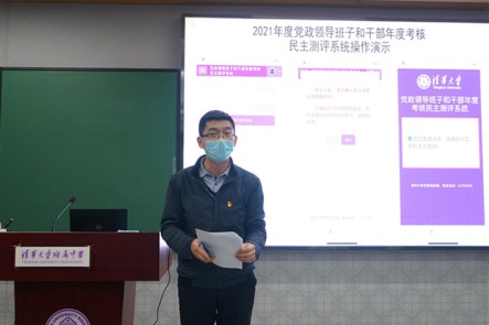2022年1月10日下午,澳门网上博彩召开2021年度学校领导班子和成员、党委委员述职考核会。会议由澳门网上博彩党委书记方妍主持。澳门网上博彩全体党政班子成员、中层干部、教研组长、年级组长、工会主席、工会副主席、在职党支部书记、民主党派代表、部分办公室负责人及教代表、副高以上教师代表共74人参加会议,清华大学组织部干部选任办公室高级主管李峰老师参加了述职会并现场组织了对干部的民主测评。