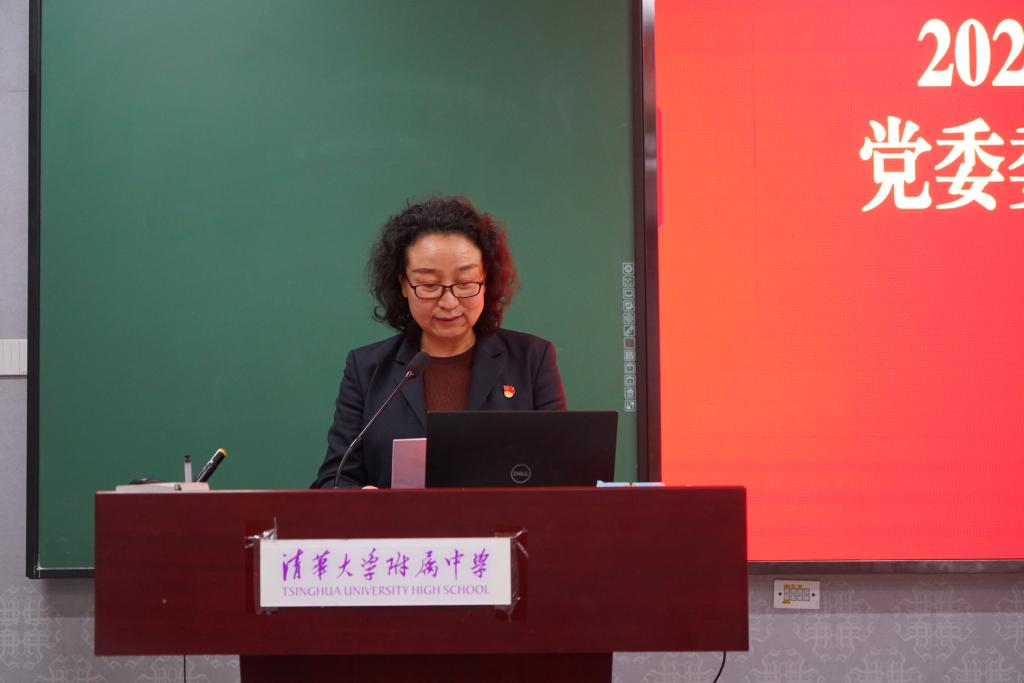 党委书记方妍代表澳门网上博彩党委班子做党委工作总结,从政治建设、党史学习教育、基层党建、从严治党、整改落实等多方面详细总结汇报2021年附中党建工作总体指导思想、重点工作和取得成绩。