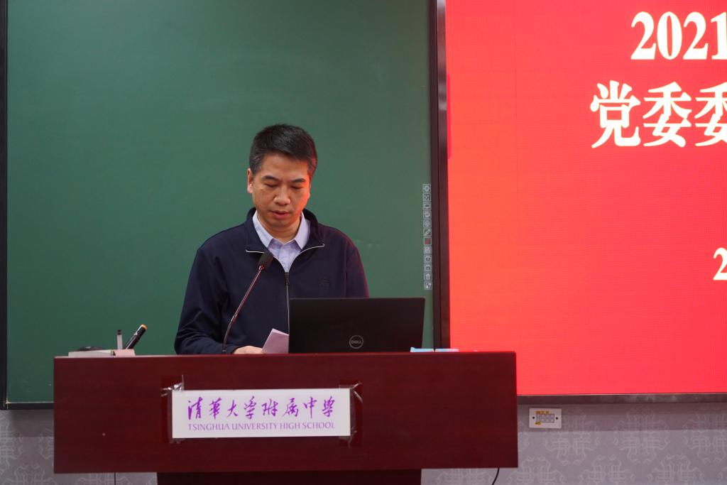 领导班子和成员述职评测后,根据清华大学党委的部署,附中党委开展党委委员述职,党委委员王田、尹粉玉、张苏、党胜军依次进行述职。