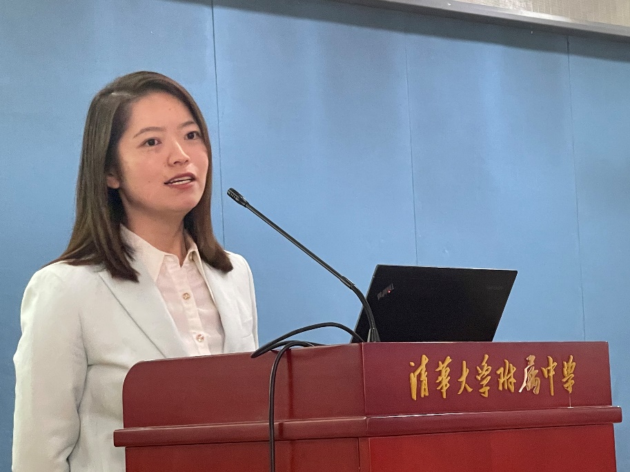 范皖晴老师的分享主题是“三有”班级活动。无论是紧扣节日的主题班会,还是响应学校提倡坚持举办的各类校园、校外活动,抑或发扬自身学科特色普及英美文化的比赛活动,都践行着范老师“有温度、有乐趣、有意义”的活动目标。范老师以“广西四联村小学捐赠”为案例,详细解释了家校、师生、同事之间的互助合作对班级活动的重要意义。漫长的前期准备,学校家委会的多方支持,学生满怀爱心、充满干劲的热情共同促进了这次以图书为主捐赠仪式的成功,不仅激发了当地小学生们对读书的热爱和对更大世界的向往,也让附中学生见到了边远乡村的真实模样,是为后续成为综合性人才难能可贵的实践体验。