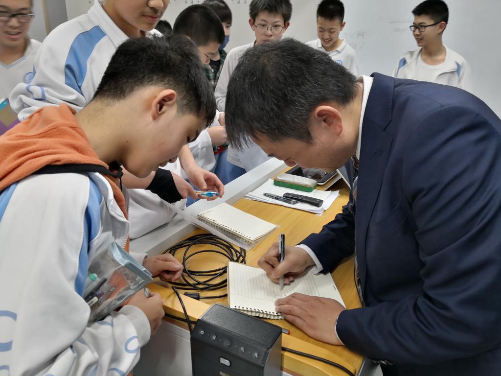 学生们一边听得津津有味,一边认真记下笔记,并且在答疑环节纷纷提出自己的想法和问题。陈虎老师耐心地一一进行解答。结束后,意犹未尽的同学们围绕着陈虎老师,请这位为国家前沿科技鞠躬尽瘁的老师签名,并继续交流探讨心中的问题。