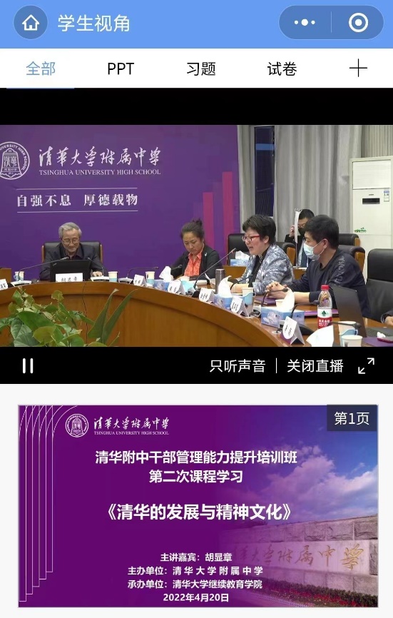 学员们听完报告后深受鼓舞,收获颇丰。大家纷纷表示,清华精神时刻鼓舞激励着代代清华人,作为清华的一员,身处中华民族伟大复兴的关键时期,在基础教育深化改革的时代背景下,使命光荣在肩,须当奋进向前。全体附中人将继续践行“自强不息、厚德载物”的校训精神,再接再厉、苦干实干,更加团结、信心百倍地朝着既定目标奋力前行!
