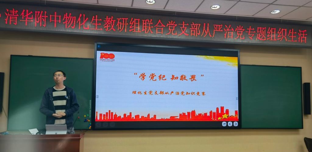 理化生教研组联合党支部以《学党纪、知敬畏》为主题,通过必答、抢答、小组讨论等多种知识竞答的形式深化对从严治党的理解。