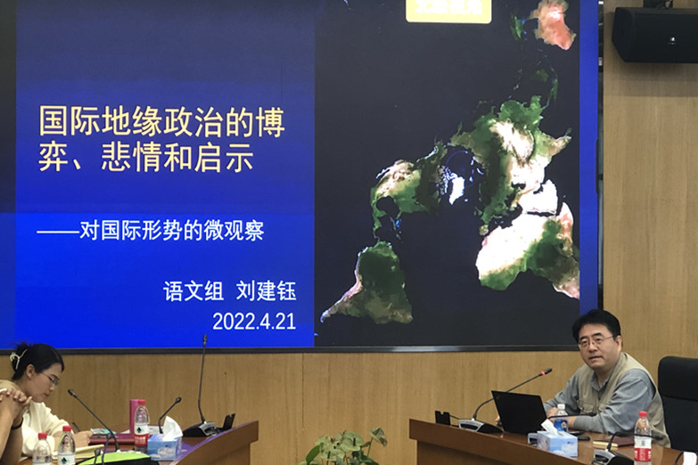 语文艺术教研组联合党支部特别增加了关于当前复杂国际形势观察主题报告,支部积极分子刘建钰老师从历史背景、文化渊源、国际关系现状等角度分析了当今时事热点。