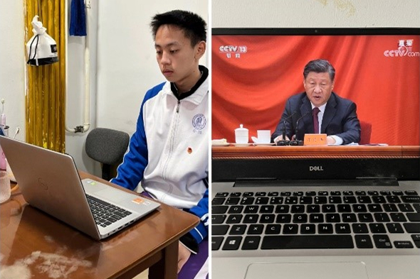 班级组织观看习近平总书记在庆祝中国共产主义青年团成立100周年大会的讲话