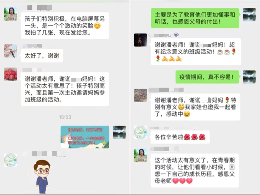 此外,初2106班以“致童年·拾童趣·向未来”主题举行班会,让同学们为即将告别的童年画上完美的句号。初2107班制作了精彩的童年成长视频,让同学们感受自己童年到青春期的变化。初2115班举办了“永葆童真,拥抱青春”的主题班会,并交流了自己的成长感言。除以上班级外,其他班级也正陆续开展本次主题班会。