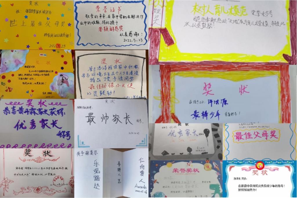初2104班同学们为父母颁发的奖状