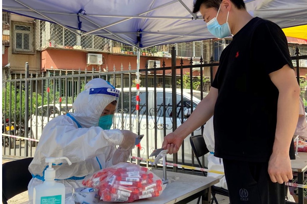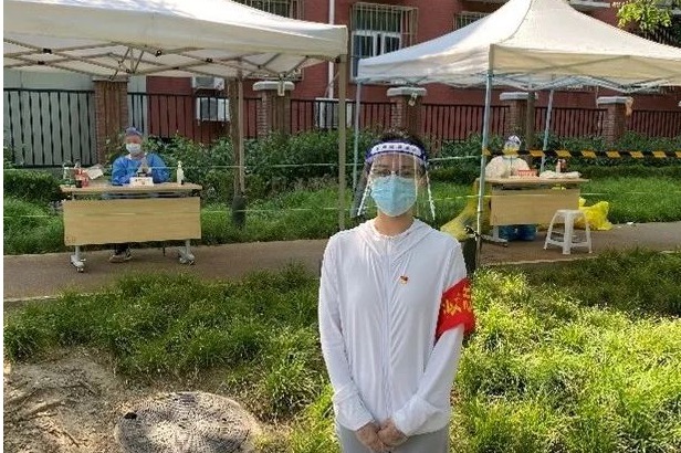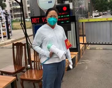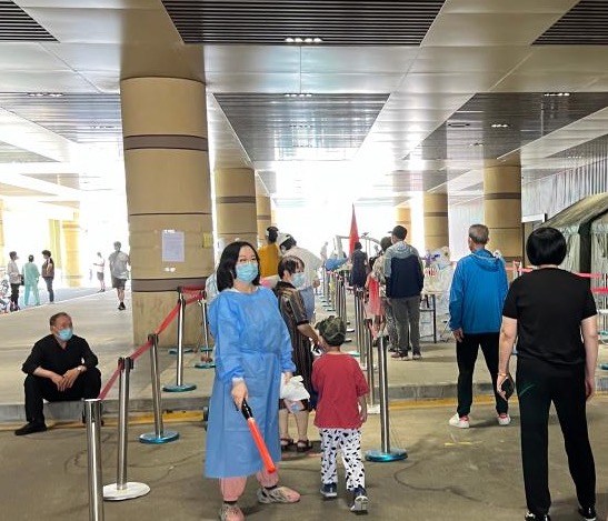 肖娜老师作为社区志愿者,进行核酸检测引导。