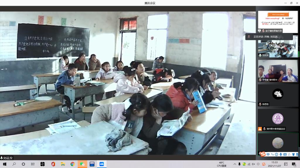 作为学生,我从那些天真的孩子眼中看到了自己的影子。因为是线上,所以我们只能通过摄像头观察学生。反而因为如此,孩子们肆无忌惮地展现出了最朴实的状态。后排男生以摸鱼为主,两边的孩子时不时用羽毛球互殴,前排的女学霸们目不转睛……联想到了自己也会在课堂上摸鱼,不禁会心一笑。而最令我感慨的还是第一排的女学霸,几次网课,她听的总是最认真的。跟读时,她的发音有些生涩,却从来都是最大声的那个;我们上课时,她甚至举手向我们提问。我没有办法询问她,认真听课的动力是什么,但我从她身上看到了一种孩子气的可爱、一股渴望接受知识的热情、一丝执着的精神。尽管条件有些艰苦,周围同学都在摸鱼,而认真听也不会有是什么好处,可她却如此专注。我当时就在想,哪怕只为了这一个人,这次支教也是值得的。那些摸鱼的孩子固然有童真于其中,但课堂的严肃认真的求学精神,更是我们所值得珍视的地方。作为一个学生,无论身在何处,只要有这股劲儿,我想,哪里都是沃土,在哪里都会茁壮成长。