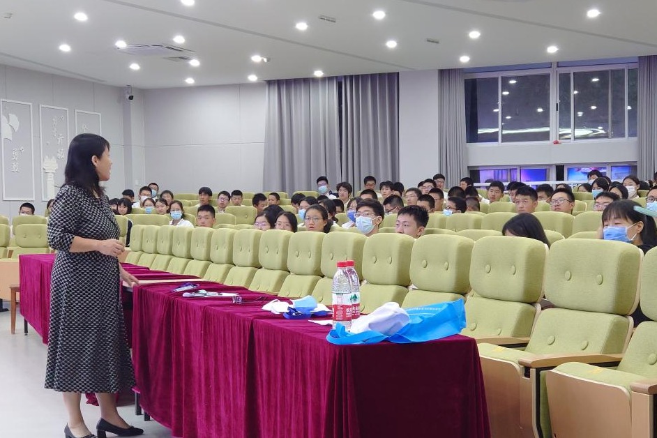 女生楼楼长张帆老师对住宿新生进行培训。张老师以生动的案例对住宿管理细则做了详尽的解读。