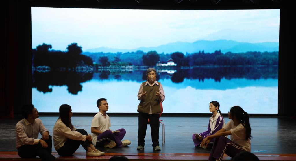 颜家珍老师、谷丰老师与附中学生,带来舞台剧《平凡中的伟大》。颜老师秉承着老教师的信念与责任讲解圆明园六十年。新老教师的对话交流展现了附中教师的代代传承,从附中到圆明园,从朝阳到夕霞,从青丝到白发,教育的路上有无数附中人砥砺前行的身影。